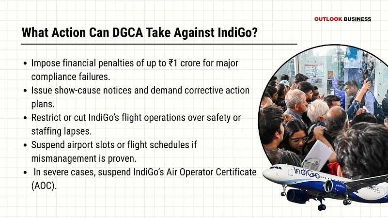 "In extreme cases, suspension of Air Operator Certificate (AOC), though this is very rare and used only when safety is compromised," said Yatharth Rohila, Partner, Aeddhaas Legal LLP.