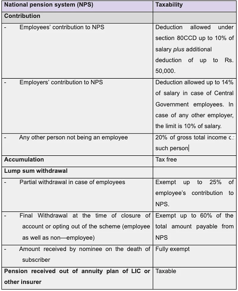 Though as per the scheme, a person can withdraw up to 60% of the total corpus, but Income Tax Act allowed an exemption up to 40% of the same. Now, the Government has made an amendment under Income-tax Act whereby, the exemption limit has been increased from 40% to 60% and it is brought in symmetry with the NPS scheme. Thus, the total amount withdrawn from NPS shall be completely tax-free for pensioners.