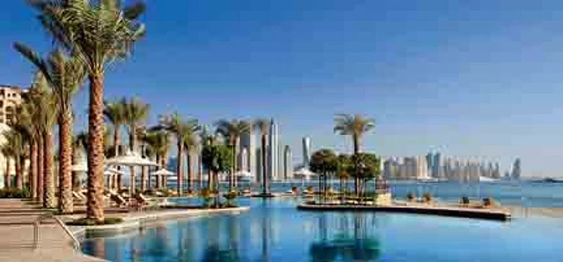 4. A view of Dubai's shoreline from the family pool at Fairmont The Palm