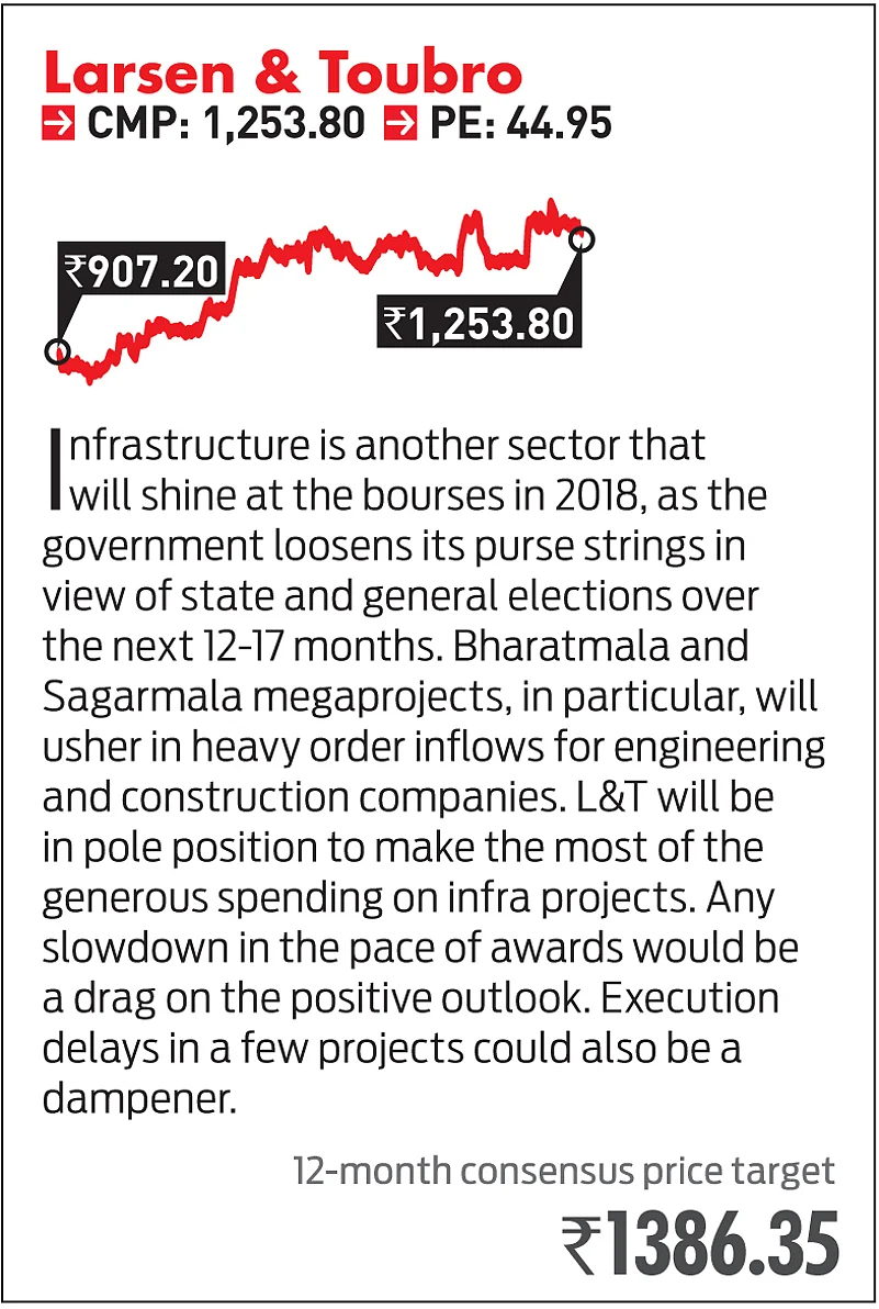 In fact, most government sectors could deliver in 2018. “Order inflows have been picking up. Execution will pick up next year. Private fixed capital formation has bottomed out. Corporates would start investing in building fresh capacities as utilisation levels improve,” says Vikas Khemani, president and CEO, Edelweiss Securities