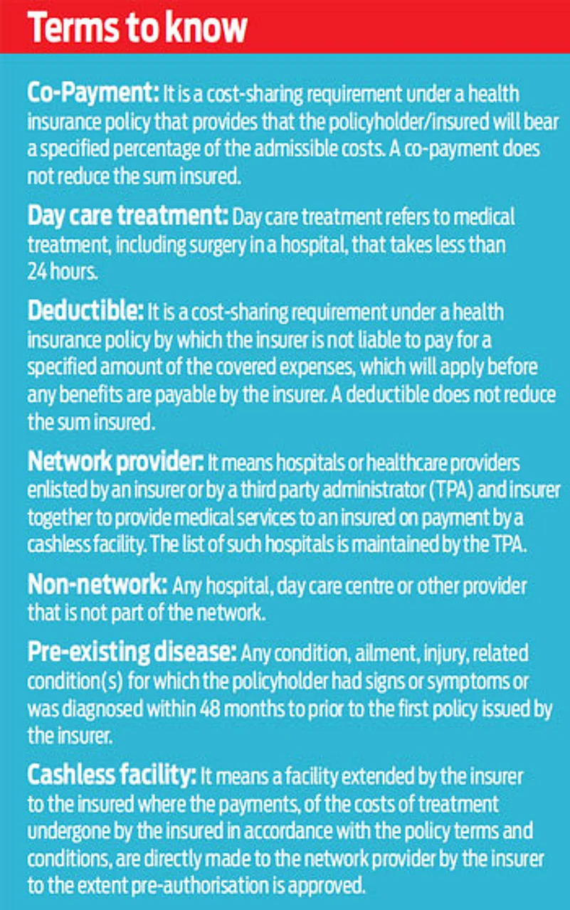 At 28, Mumbai-based Roshan Bhagat has made sure that he has a health insurance that covers his wife and 18-month-old son for Rs 3 lakh. "It is a floater for all three of us for which I pay Rs 16,000 annual premium, which is sufficient at the moment. I will increase the cover later," he says. Most people who understand the need for health insurance and fidget over the premium end up paying more. Health insurance is more than just paying the premium; it also means knowing what the policy covers should you experience a crisis.