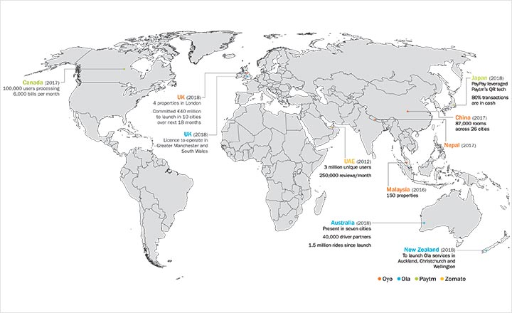 Mohla says that expansion allows Indian start-ups to split costs of operation — direct costs are incurred overseas while indirect costs are retained in India. “Design, software and engineering are done in India. Even if they (Ola, Oyo, Paytm) are paying the best salaries in India, they are much lower than abroad,” says Mohla.