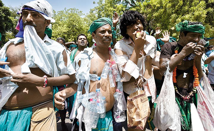 Their means definitely know no ends. By adopting several uncanny methods each day, farmers from Tamil Nadu, who are protesting against the center in order to reclaim the drought relief and pensions for old farmers, are trying to grab the attention of the government, in every possible way. From dressing up like Modi and whipping up farmers to stripping on roads to cutting off their wrists live on the television, they have left no stone unturned to capture the eyes of the masses, in order to reach the government for the past few weeks in the national capital. Nonetheless, it seems like the government has worn a deaf ear.