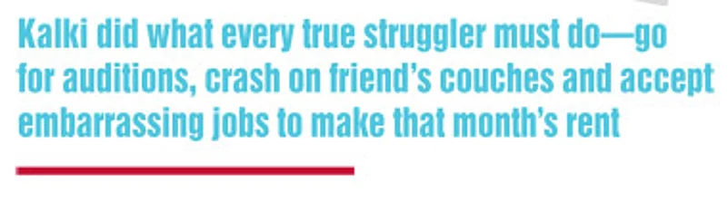 This wasn’t the first time Kalki was exposed to the famous Mumbai hustle that every young actor has to endure. “I remember when I had to go for social events, I would get that one Long Island iced tea and sip on it all night. It has the most amount of alcohol for least amount of money. So you have to find your strategies to living with less,” she says. In her pre-Dev.D years, Kalki did what every true struggler must do—go for daily auditions, crash on friend’s couches and accept embarrassing jobs to make that month’s rent. “The worst thing I did was this awful teleshopping ad. It was for one of those useless weight loss machines. I remember it was this jiggly thing—you put it on and weight is supposed to just fall off! I was made to wear pink hot pants and a bra. But I got paid around `20,000 and that was great. I was living on a week-to-week basis because I didn’t have financial support from my parents.”