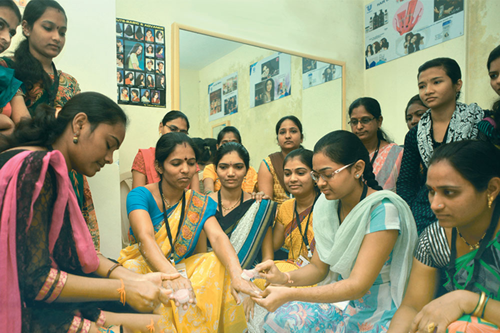However, these are not demure women who take things as they come. Mital Kansagra, a plucky 33-year-old, represents the go-getting attitude of semi-urban India. She is enrolled in the ‘Beauty and Hair Care’ course at the centre and requests me to ask LabourNet to translate the curriculum in Hindi since most students have only studied English for one or two years and aren’t proficient in it.