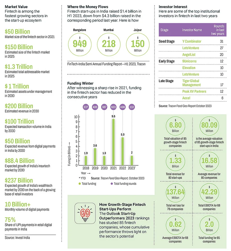 The fintech market in India is among the fastest growing ones in the world. The second most funded start-up sector in the country in 2022, fintech’s market size is estimated to reach approximately $150 billion by 2025, up from $50 billion in 2021, according to investment promotion agency Invest India. Its major sub-sectors are digital lending, payments, insurtech and wealthtech.
