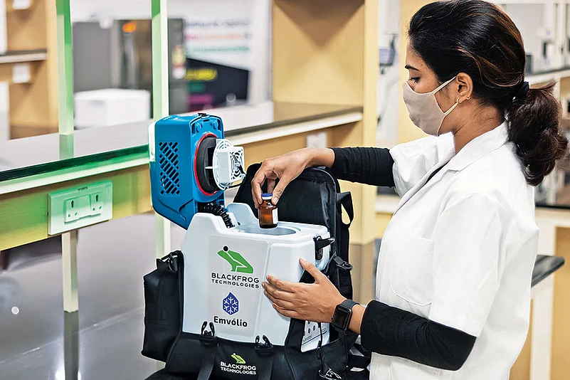 Emvolio, the start-up's first commercial product in 2021, came in during the pandemic. Cold-chain workers in 14 Indian states were transporting critical biological substances using Emvolio devices, be it through villages, mountains or forests. And Blackfrog’s device made it possible as it could sustain a range of temperatures—from -20°C to 20° C—with a variance of less than 0.5°C.