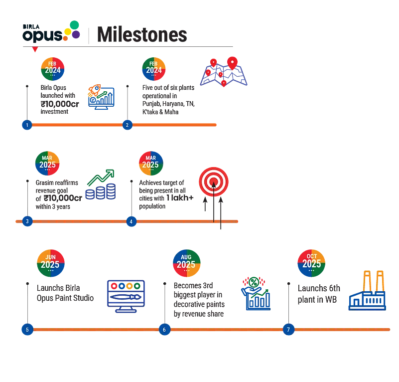Grasim Industries, the Aditya Birla Group company behind Birla Opus, had quietly built an infrastructure designed to operate at full scale from day one. The group invested ₹10,000 crore, one of the largest outlays in its history, to ensure that every plant, pipeline and distribution channel was ready for a national rollout. By March 2025, Birla Opus had already entered the top-three decorative-paint brands by revenue.