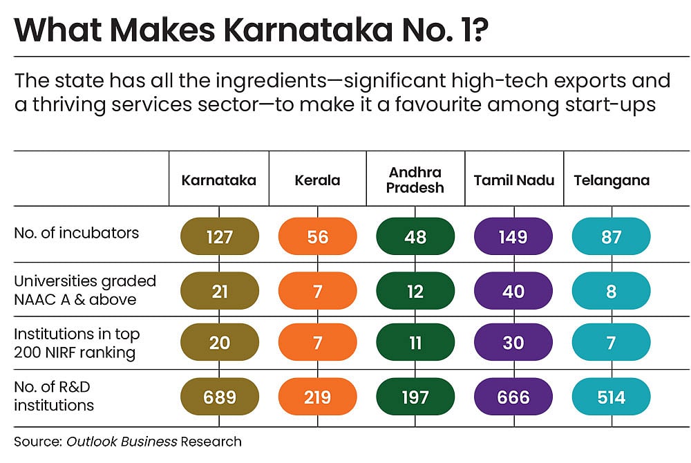 Karnataka is already a favourite among start-ups, given its position as the country’s top information technology (IT) software hub. And, once again, it clinches the top spot in the Outlook Business Outperformers 2026 rankings. With its dominance in software exports and global IT services, the state secures an overall score of 83.3 and first place among peers for starting up.