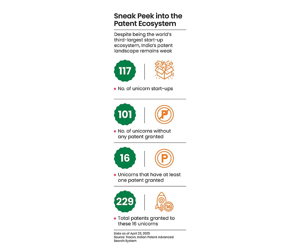 An evaluation of patent filing data by Outlook Business last year showed that of the country’s 117 unicorns, 101 did not hold any patents at all.