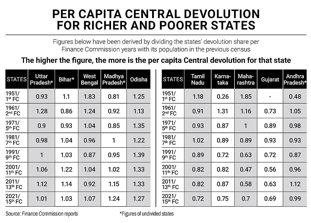 Southern states have legitimate reasons to feel that their impressive achievement in controlling population growth has been punished. Instead of hailing their efforts, they have been handed a reduced share in the Central pool of taxes, as per capita devolution remains an important principle of this division. At the same time, this hurt tends to make other issues invisible in policies that have squarely put poorer states at a far greater disadvantage than the tax devolution regime has done to southern states.