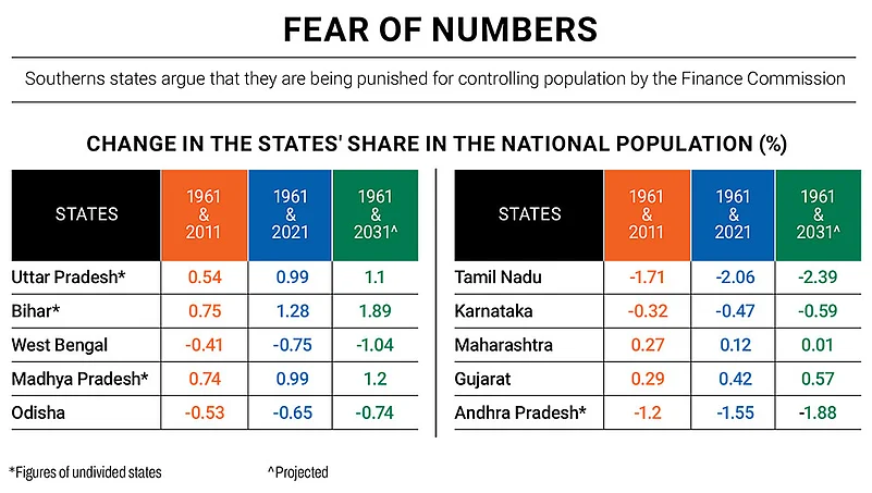 The terms of reference for the Fifteenth Finance Commission had only mandated it to rely on the 2011 census in 2017, and the weights for individual criteria were not disclosed till February 1, 2021, when the finance commission’s final report was tabled in Parliament. But, by then, the politics around population growth had already played out and a feeling had set in that southern states were being made to pay for the low social indicators of and population explosion in other states.