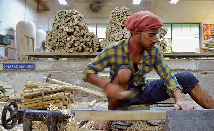 A man carefully binds two halves of a leather ball with a needle and thick thread. Seated on a high stool, he is engrossed. Similarly, scores of workers are busy working in this large airy room, performing a variety of tasks — cutting leather, finishing it, fitting the halves over the core of the ball. The precision with which the workers go about their work clearly shows the job at hand is more of a craft. And this is the cricket ball section of the Meerut-based Sanspareils Greenlands (SG), the largest cricket equipment maker in the world.