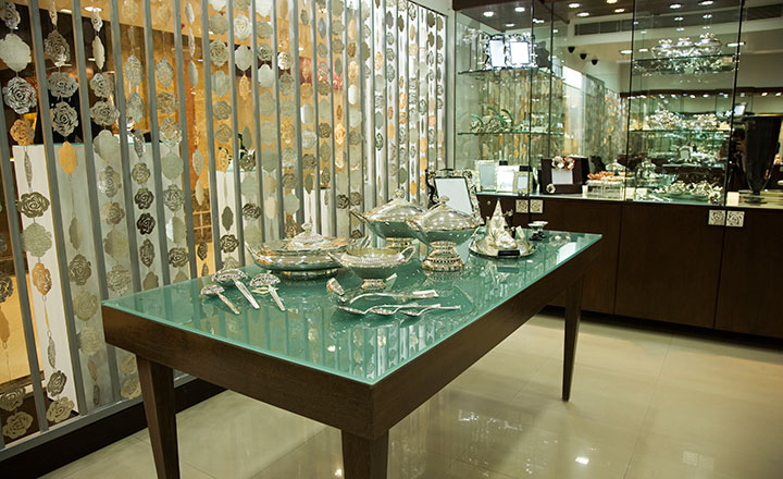 Alchemy DeLuxe, owned by Delhi-based Poonam Gupta deals with silverware, furniture and tableware. Gupta says, “Our furniture is based on clean lines, combining Mughal motifs in the design.” Using multiple elements such as precious and semi-precious stones, silver, other metals and wood, she manages to complete the look that is desired by her customers. While a chair combining these elements in a living room would start at ₹50,000, a 4 feet x 4 feet table combining Mughal designs with geometric shapes would start at ₹2 lakh. Besides this, other customisable designs are available on request.