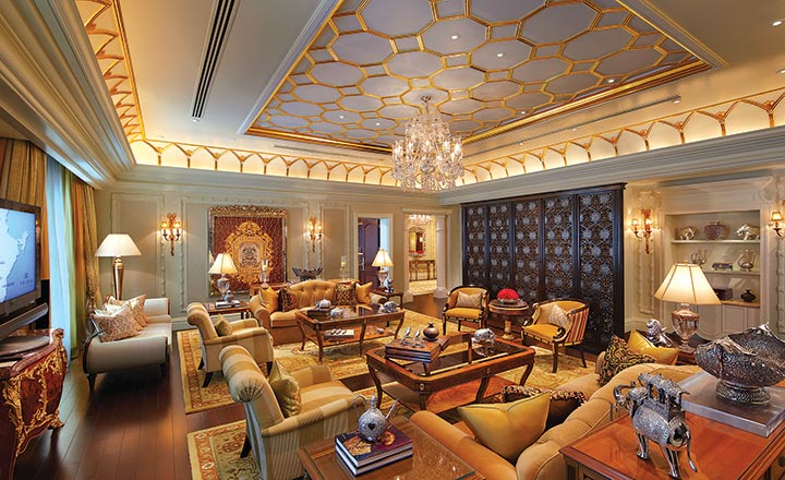 But what if you happen to be a person of business and prefer something more slick and less royal, but equally opulent? The Grand Presidential Suite at ITC Maurya in New Delhi would arguably qualify. Affixed with state-of-the-art business features, the suite holds the record of hosting personalities such as Vladimir Putin, Barack Obama and the Dalai Lama. Its sprawling 4,600 sq ft area includes bedrooms, meeting rooms and a modern office equipped with the latest technology and gadgetry. Part of the hotel’s Grand Presidential floor, the suite also provides access to a large living room that is partitionable into a study and a smaller living room that has a well-equipped library and a 12-seater private dining room.
