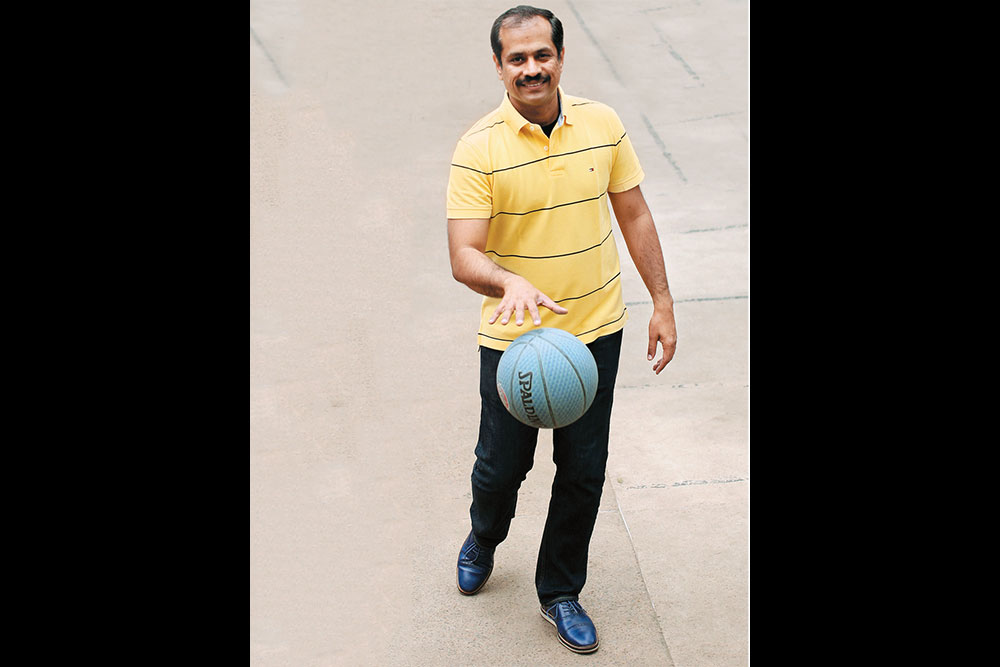 Basketball is my favourite sport — you don’t need company to shoot some hoops, it’s just as easy to practise on your own. Playing the game with my daughters is a great stress-buster.