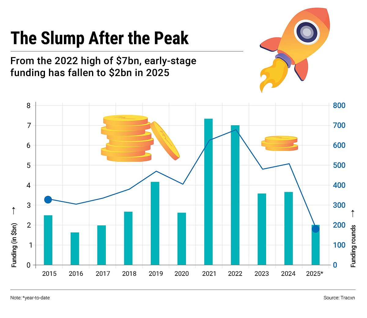 The funding climate reflects this caution. Numbers from data platform Tracxn show Series A and B funding plunging from $7.3bn in 2021 to $3.6bn in 2023, while the average time to raise these rounds stretched from 27 to 37 months.