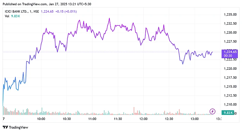 At 12:50 pm, ICICI Bank shares were trading at Rs 1,223.90 price level, up by nearly 1.22% on the National Stock Exchange.