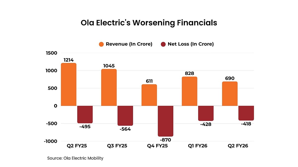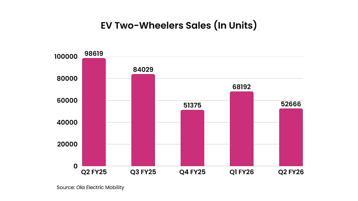 Overall losses also widened continued due to declining sales volumes, which were down nearly 47% YoY, from 98,619 units of electric two-wheelers sold in Q2 FY25 to 52,666 units sold in Q2 FY26.