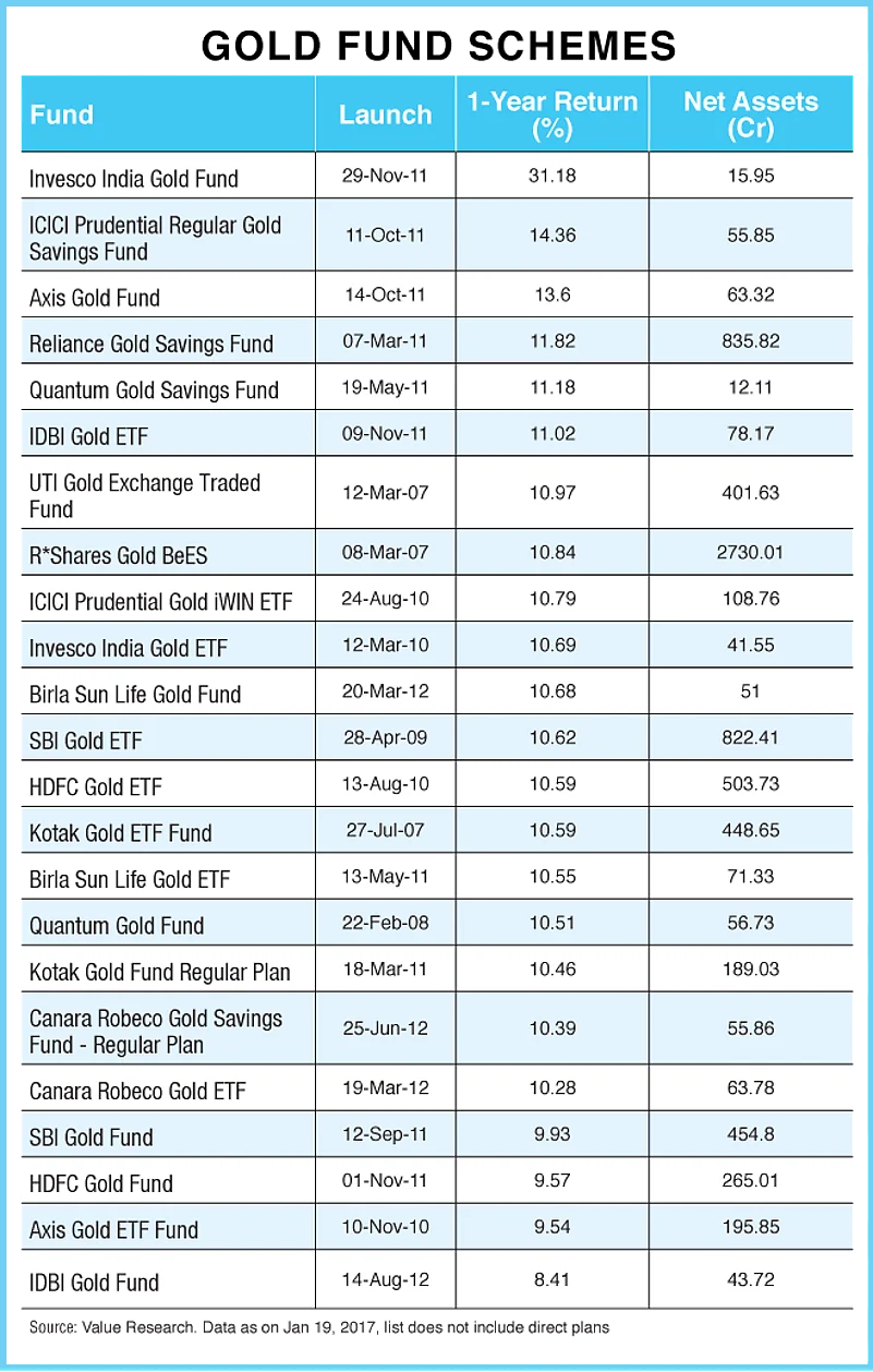 These funds can easily be bought and sold and there would be no problems in liquidating your gold investments. Customarily, in India, investments in gold are in the form of jewellery and you face a significant loss of value as a lot of your purchase price goes towards design and making charges. With gold funds there are no losses in terms of design and making charges and to top it all you will not have to worry over the safekeeping of physical gold.