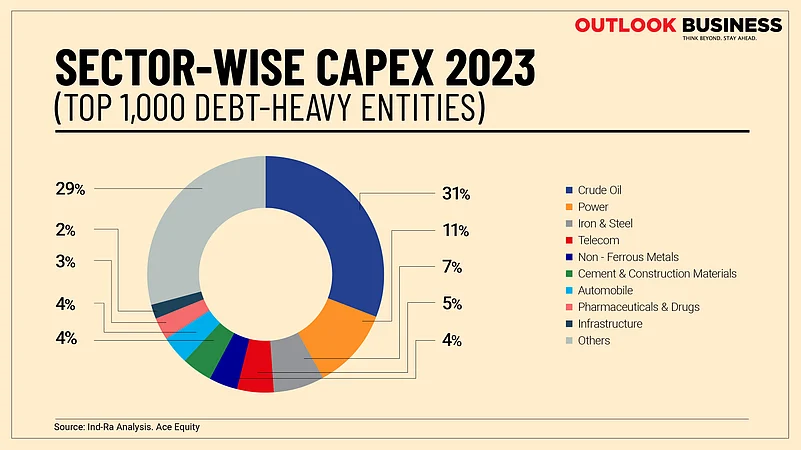 Preliminary data of the top 1,000 debt-heavy corporates (contributing over three-fourth of private corporate capex) suggests that spending on capex gained traction in FY23, amid multiple uncertainties. The data indicates that large capex activities have been concentrated in sectors such as oil & gas, iron & steel, and telecom, whereas sectors such as cement, chemical, auto ancillary and textiles have shown capex spending in pockets.