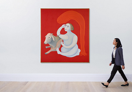 The groundbreaking work "People at Mosque" by artist Bhupen Khakhar was also up for auction; it brought in $1.8 million (Rs 14.7 crore). According to Sotheby's, this painting, which dates from before 1967, is among Khakhar's earliest and represents the start of his neo-miniaturist style. The artwork was purchased shortly after it was shown at Khakhar's first solo exhibition in New Delhi that year, and it was brought out for this sale after nearly fifty years.