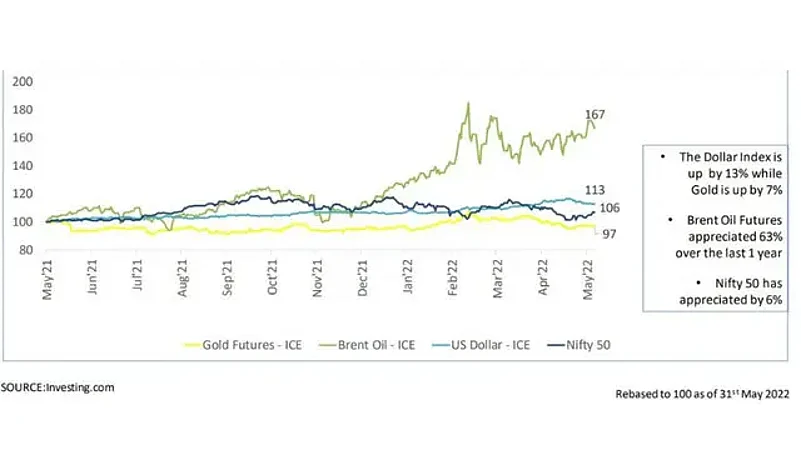 Commodities traded in the US Dollar index reached new highs, as risk appetite continued to deteriorate. With a likely resolution to the Russia-Ukraine conflict looking remote, and China’s concentration on a zero-covid policy remaining same as before, fears about demand-supply disruptions have exacerbated global economic growth issues. In addition, high liquidity and low-interest rates have also led to inflows of equities in emerging markets, such as India.