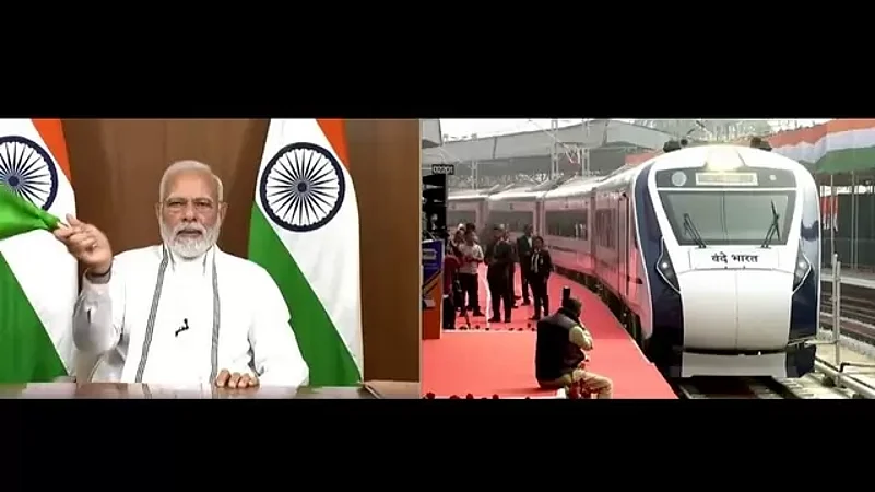 Prime Minister Narendra Modi on Friday virtually flagged off the Vande Bharat express connecting Howrah and New Jalpaiguri in the presence of West Bengal Chief Minister Mamata Banerjee. Also present on the occasion were Governor C V Ananda Bose and Union Railway Minister Ashwini Vaishnaw.
