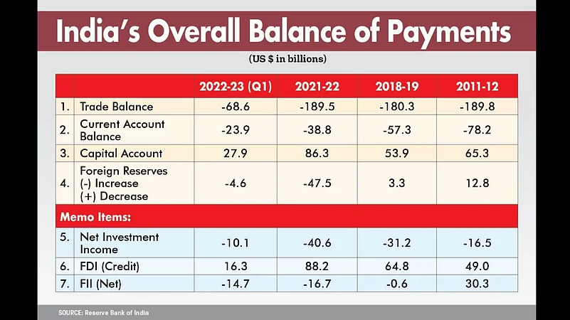 These interventions are seemingly justified by the exogenous factors — high crude prices, food inflation following the Russia-Ukraine war and the interest rate hike by the US — that have affected other major currencies as well, with the US dollar acting as the reserve currency for international transactions. However, for India, this story takes a different turn when we review the overall Balance of Payments situation, summarized in Table 1.