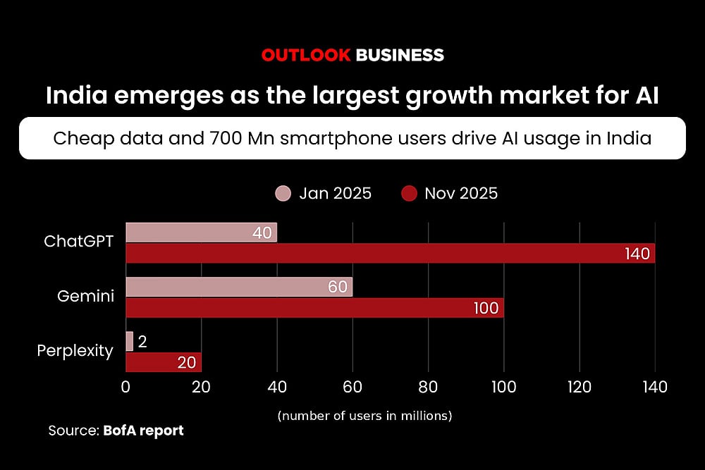 India has become the world’s largest live testing ground for large language models. A Bank of America Global Research report shows that India now leads all markets in active users across major LLM platforms, driven by cheap data, a 700 million plus mobile base, and aggressive bundling by telecom operators.