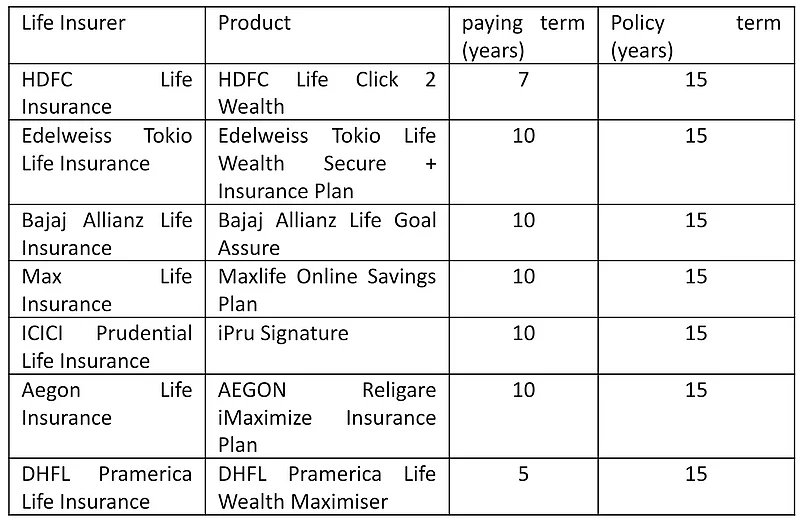 Limited premium paying plans allow an individual to pay the premiums for a limited period of time say 5, 10 or 15 years and will get the cover for the entire policy term. However, the policy period and premium paying term may varies from insurer to insurer. According to one’s requirements and affordability one can choose the policy term as well as premium paying term.