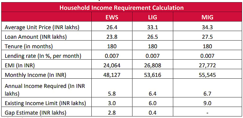 Hence, an EWS household with an annual income of under Rs 0.3 million would find it challenging to avail this loan as the EMI requirement is above the FOIR limit set by the banks.