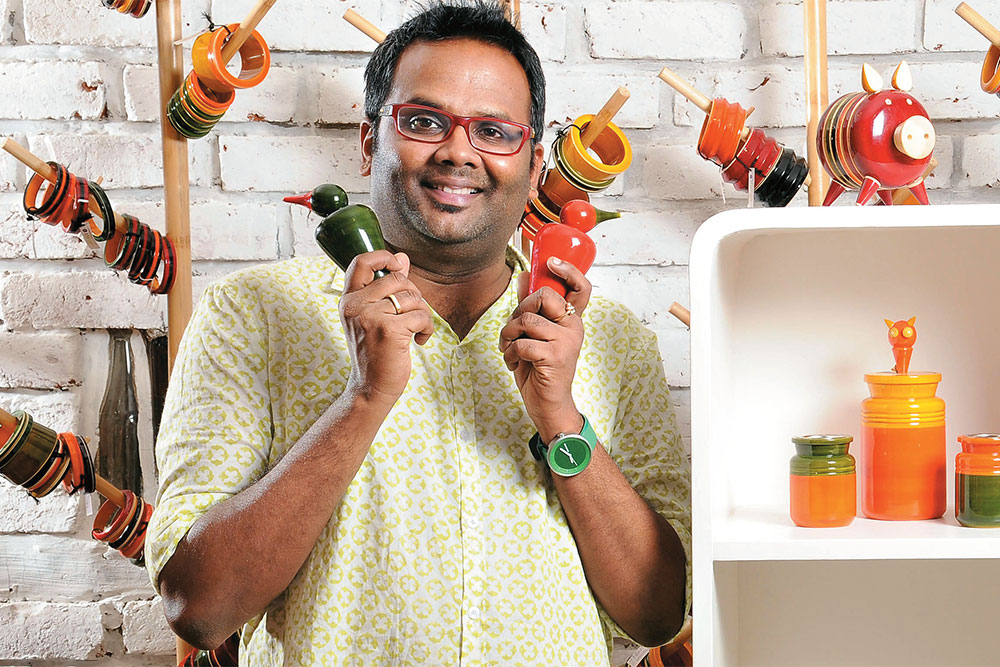 Then, he bought his first house and in decorating it, spent much time exploring different traditional crafts, both from his native Chettinad region in Tamil Nadu as well as those from his new state. “Karnataka has so many beautiful handicraft traditions — Channapatna, of course, but also Bidriware, Ganjafa cards, Kasuti embroidery. But very few people are aware of them.” Wanting to promote regional crafts, he offered his design consulting services pro bono to Fabindia, which put him in touch with some artisans from Channapatna. Ultimately, that project fizzled out but Vaidyanathan’s interest in the craft — and his determination to do something for the artisans — was kindled.