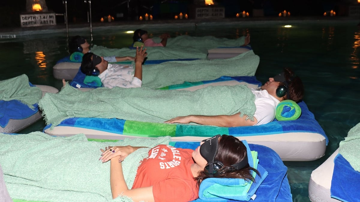 The evening unfolded as a carefully curated, immersive journey, beginning with Madhurima Nigam opening the space and sharing the story behind IMMERSIV’s arrival in India. Ashley Edelman then created a sacred and safe container for the experience, guiding participants into a quiet moment of intention-setting, reflecting on what they wished to release or receive. This was followed by a sacred cacao ceremony, an ancient heart-opening ritual designed to gently prepare the body and mind. Participants then transitioned to individual floating beds in warm water, with headphones and eye masks enhancing their inward focus. A 60-minute guided breathwork journey followed, where the water supported the body and the breath facilitated deep transformation. The experience concluded with a gentle reintegration, allowing time to ground and absorb the shifts, and flowed into soul-refreshing food and open conversations, bringing together reflection, connection, and a sense of quiet joy.