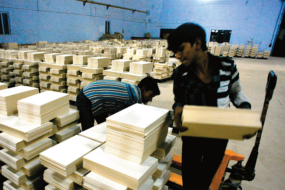 Morbi is now India’s largest ceramic tile-making cluster, spread over an area of 60 sq km with 390 glazed-tile units, having an annual production capacity of 854 million sq m of tiles, 65 sanitaryware units with an annual production capacity of 28.5 million pieces and 150 floor tile and vitrified tile units, that boast of an annual production capacity of 383 million sq m of tiles. Ninety per cent of India’s tiles are supplied by Morbi and the region is also a top export supplier, having hegemony in exports to Africa and the Gulf Cooperation Council (GCC) region.