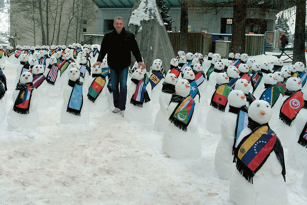 Campaigners at WEF created a field of 193 snowmen to draw attendees’ attention to the millennium development goals