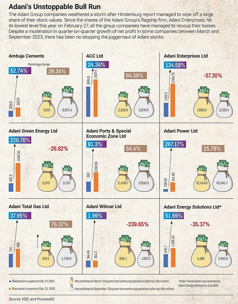 The timing of launching the country’s largest follow-on public offer (FPO) by the Adani Group in January 2023 could not have been better. The shares of the conglomerate’s flagship firm, Adani Enterprises, had just ended 2022 with over 120% returns. Speaking ahead of the launch of the FPO, chairperson Gautam Adani expressed confidence about the timing of the issue. “A time when we are at our strongest with most of our growth is still ahead of us...,” he asserted.