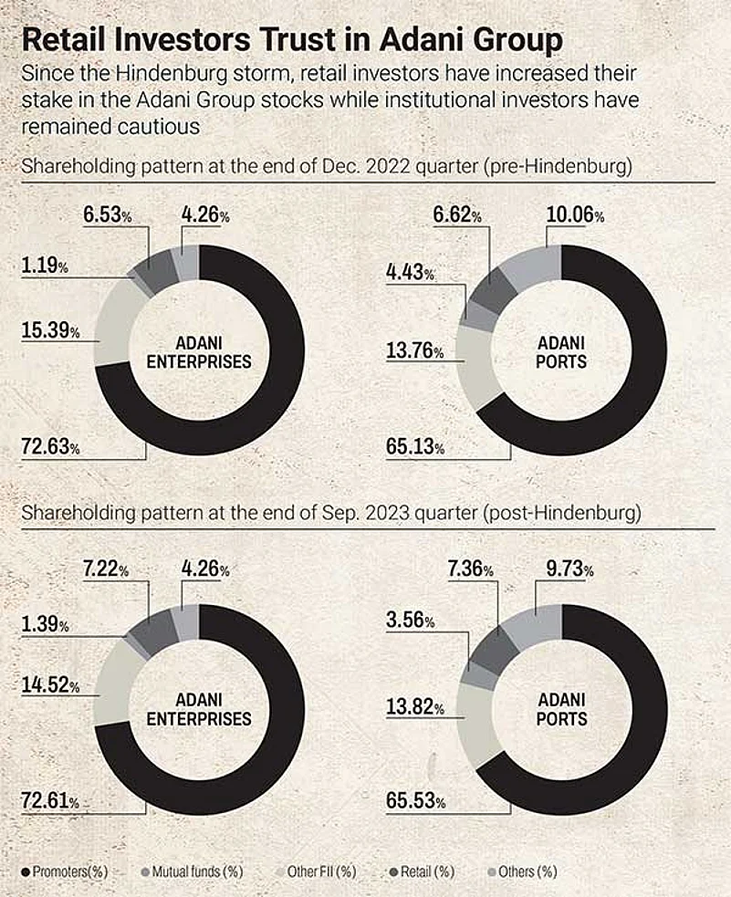 With the Hindenburg report against the Adani Group set to turn one year old, the shares of the group may find themselves at the same level they were at before the massive sell-off. While Adani businesses have recovered to an extent from the hit to valuations, the battle for trust is not over yet. Does this explain why the feelings of institutional investors on the bourses do not match the exuberance of retail investors?