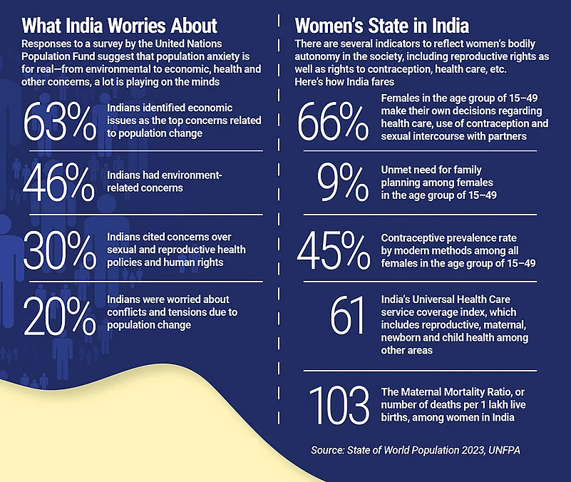 Social scientist and demographer Shireen Jejeebhoy, in an interaction with Outlook India in November last year, spoke about the excitement around India becoming the most populous country in the world which has caused some alarm in many quarters of the country. “Maybe some are using this as an opportunity to call for a two-child norm policy and penalties on those who have more. This is clearly a violation of people’s reproductive rights, as India has committed itself to people’s right to bear the children they want, without any interference or pressure,” she said.
