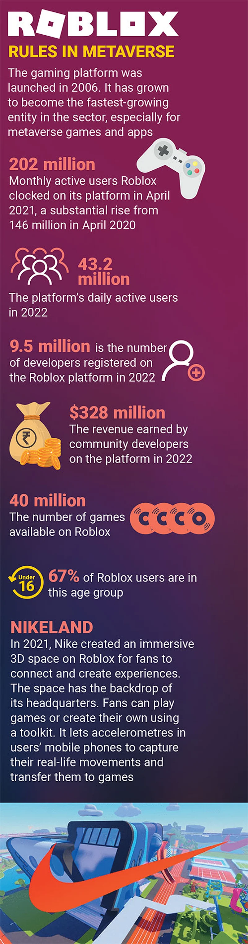 “Many of our clients are at various stages of the discover-create-scale journey and also exploring various dimensions of metaverse, ranging from building immersive shopping experiences to creating digital twins of complex operations set-ups and products,” says Ravi Kumar S., president of Infosys. “Presently, the metaverse is largely tapped across retail, shopping, gaming and, to some extent, for digital twins for product and complex environment engineering and maintenance. We see the metaverse being further leveraged for education and workplaces,” he adds.