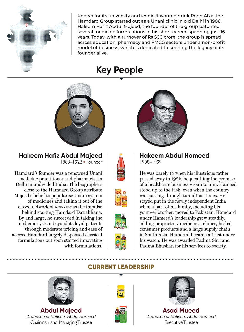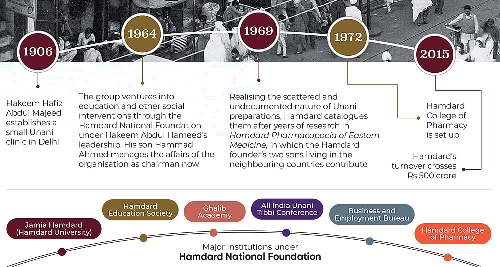 Known for its university and iconic flavoured drink Rooh Afza, the Hamdard Group started out as a Unani clinic in old Delhi