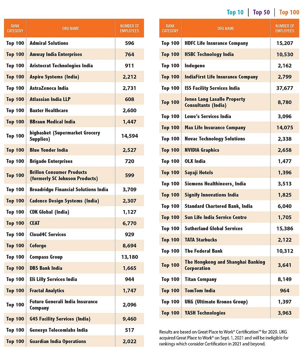 Take a look at the list of India’s Best Workplaces For Women in 2021 drawn up by the Great Place to Work® Institute