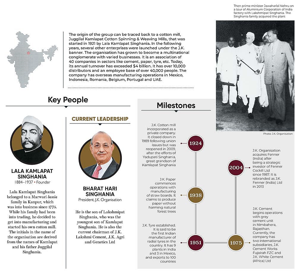 The origin of the group can be traced back to a cotton mill, Juggilal Kamlapat Cotton Spinning & Weaving Mills, that was started in 1921 by Lala Kamlapat Singhania