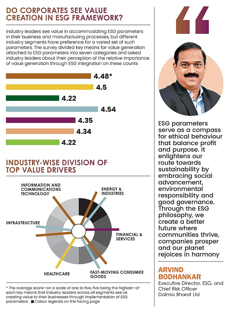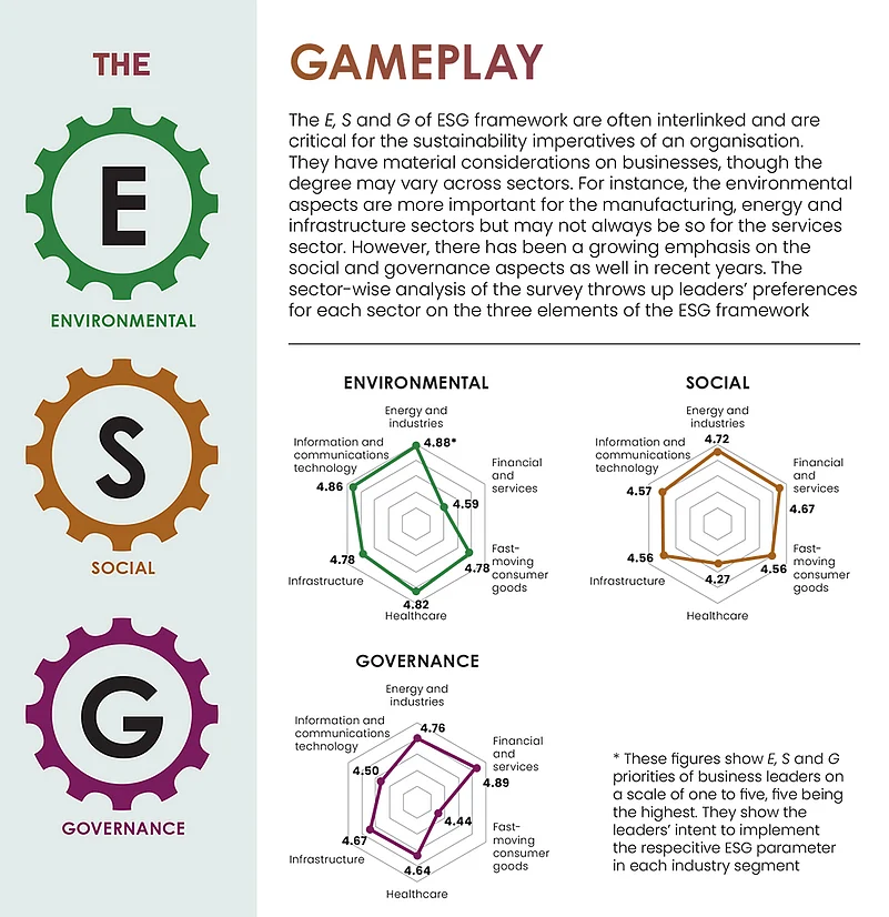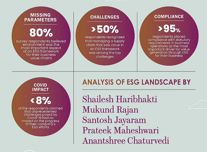 The survey includes responses from over 100 leaders from companies representing a broad cross-section of industries and revenues. It shows their apprehension about meeting ESG targets and inability to grapple with an unavoidable global reality.