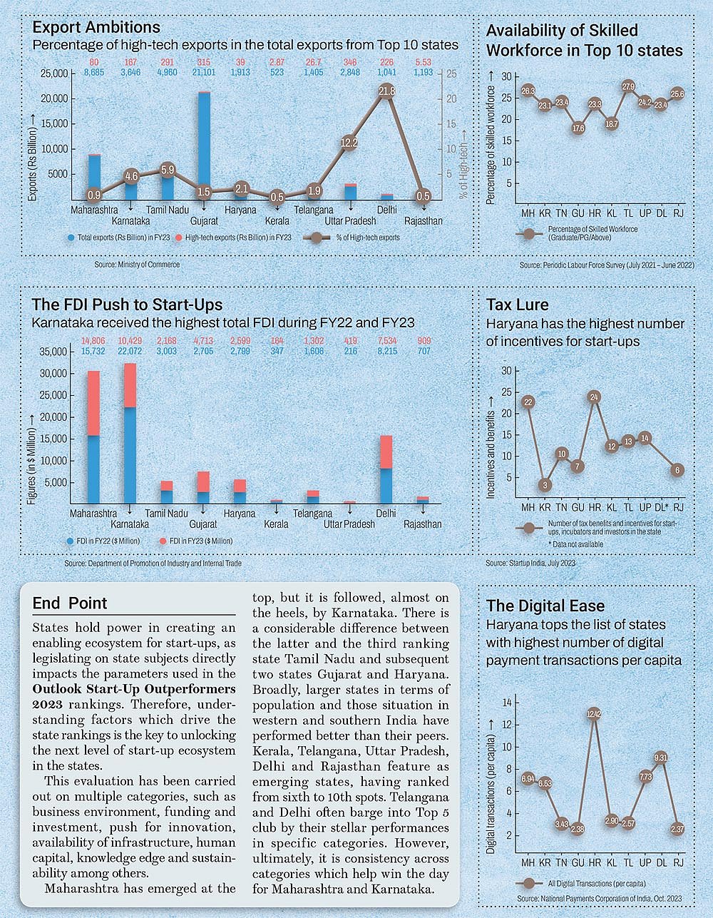 The start-up sector has contributed significantly to the growth of Karnataka, Maharashtra, Telangana and other states that recognised the potential of innovative offerings early on. The rise of digital payment platforms, inflow of foreign direct investment, tax benefits and incentives, business-friendly policies, etc. have been major drivers of growth of this sector