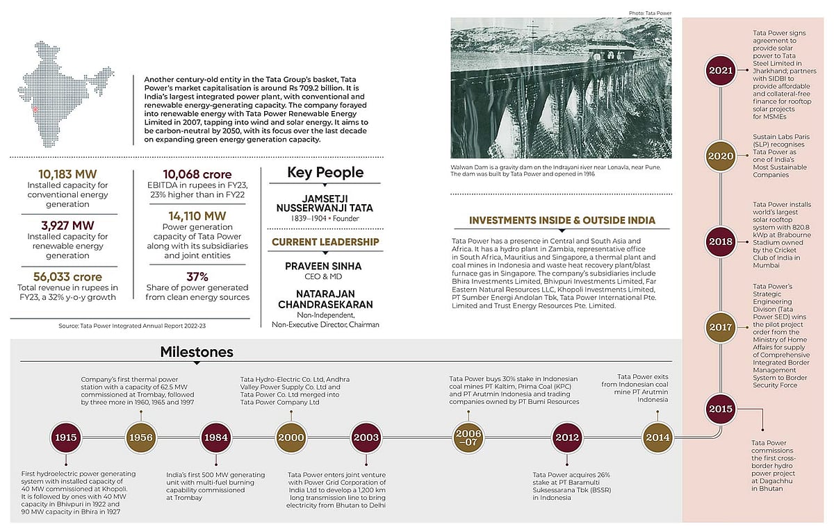 Another century-old entity in the Tata Group’s basket, Tata Power’s market capitalisation is around Rs 709.2 billion. It is India’s largest integrated power plant, with conventional and renewable energy-generating capacity