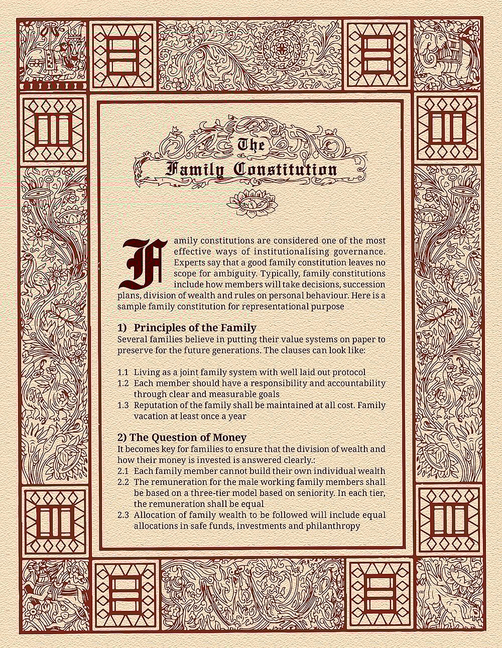 Family constitutions are regarded as one of the most effective ways of governing family businesses. Here is a sample
